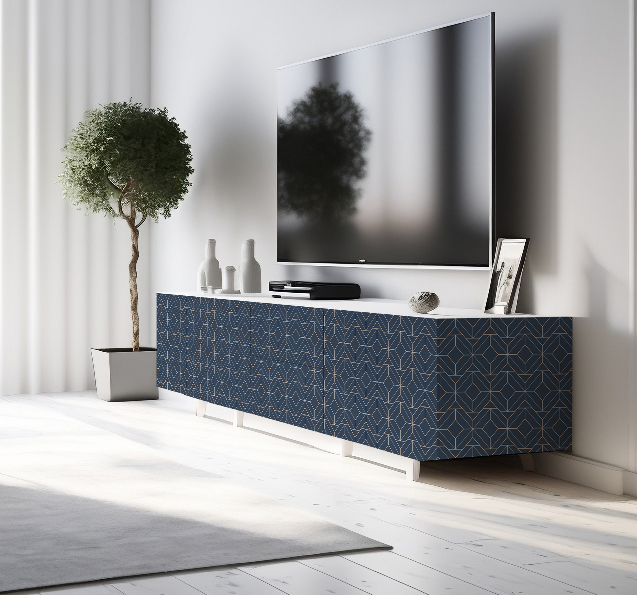 Deze Art Deco Decoratie sticker lijnen is een ware toevoeging aan jouw interieur! Hij bevat een grafisch ontwerp met blauwe lijnen en gouden accenten. Ze zijn geproduceerd in matte kleuren en hebben een grammage van 80 microns. Dit zorgt voor een duurzame en resistent product die gemakkelijk schoon te maken is met een vochtige doek en neutrale zeep. Hij is geschikt voor alle vlakke oppervlakken en heeft een levensduur van 8-10 jaar. Bovendien produceren wij ze op bestelling, waardoor de klant de mogelijkheid heeft om de gewenste afmetingen te personaliseren. Het aanbrengen is zeer eenvoudig en kan eventueel met behulp van een spatel worden gedaan (niet inbegrepen).