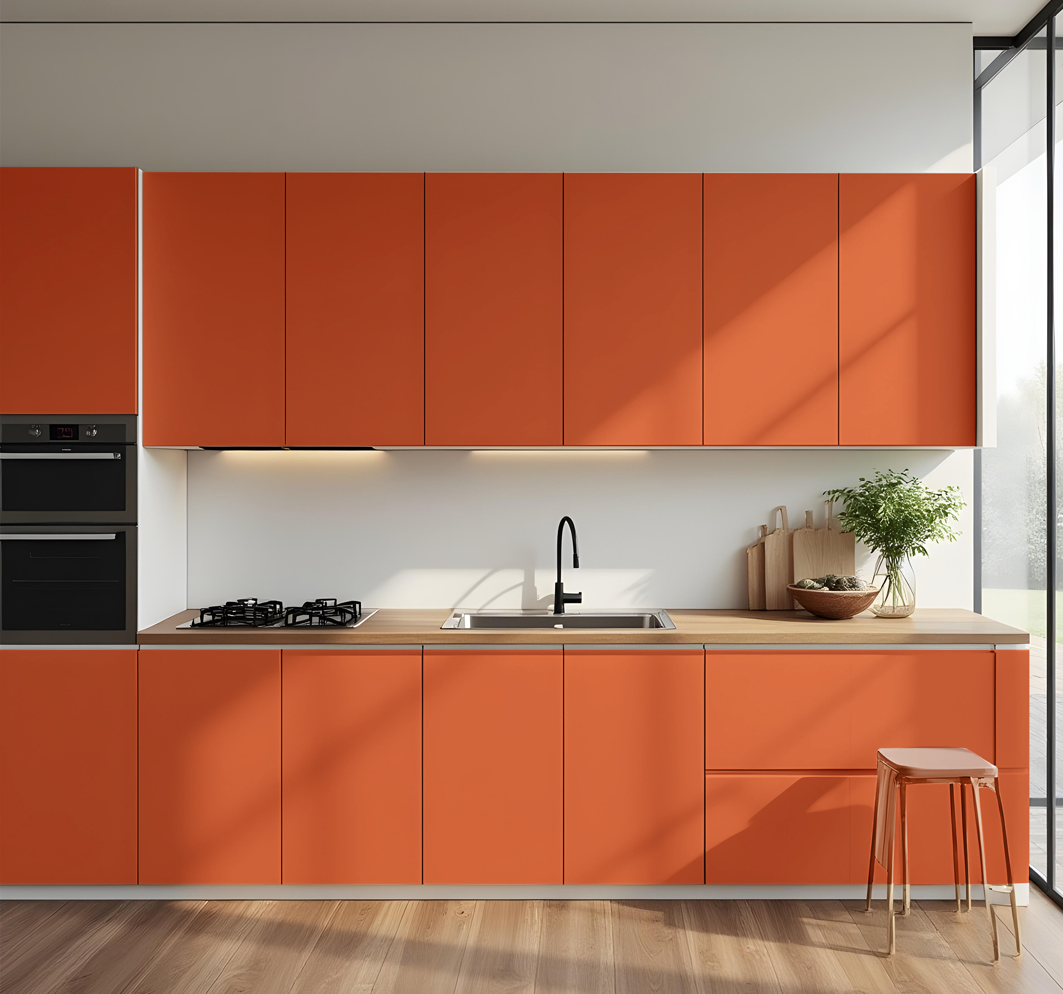 Deze glanzende oranje kleur keuken muursticker is de perfecte oplossing om uw keuken in een handomdraai te transformeren. Met zijn levendige kleur en unieke uitstraling voegt het direct karakter toe aan uw interieur. Creëer een vrolijke sfeer die uitnodigt tot koken en samenzijn. Laat uw creativiteit de vrije loop en maak van uw keuken een plek waar iedereen zich thuis voelt!