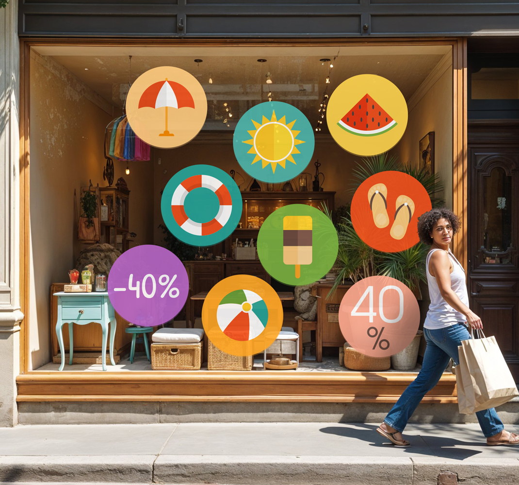 Ontdek onze kleurrijke zomerkortingen korting sticker, speciaal ontworpen om jouw etalage of verkooppunt een frisse, levendige uitstraling te geven! Deze sticker straalt vrolijkheid uit met zijn felle kleuren en aantrekkelijke graphics die de aandacht trekken van voorbijgangers. Perfect voor de zomeruitverkoop, deze korting sticker maakt jouw aanbiedingen onweerstaanbaar en zorgt ervoor dat klanten snel op de hoogte zijn van de geweldige kortingen die je biedt!