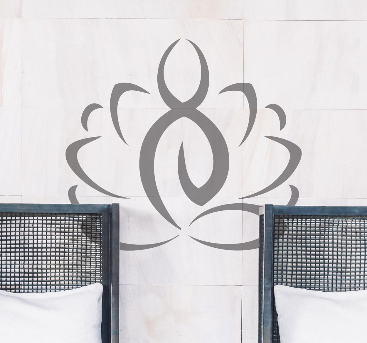 met een abstracte weergave van een figuur in een karakteristieke yoga houding