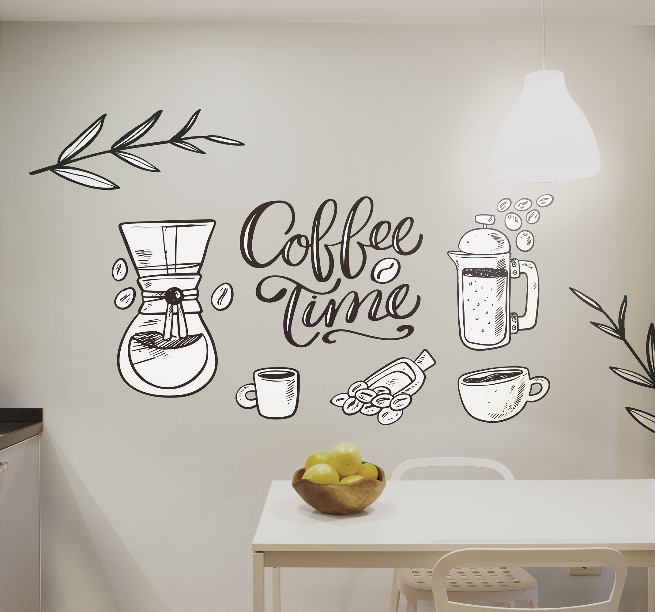 Een koffie patroon sticker op jouw ruimte voor een verandering. Dit ontwerp is een coffee time tekst muursticker voor een drankje met koffiekopjes en alle elementen die nodig zijn om een perfecte koffie drank te maken, het gaat ook vergezeld van de tekst ‘koffietijd’. Deze geweldige keuken koffie elementen sticker voor aan de muur zou zoveel schoonheid toevoegen aan jouw keuken, eetkamer of bar.