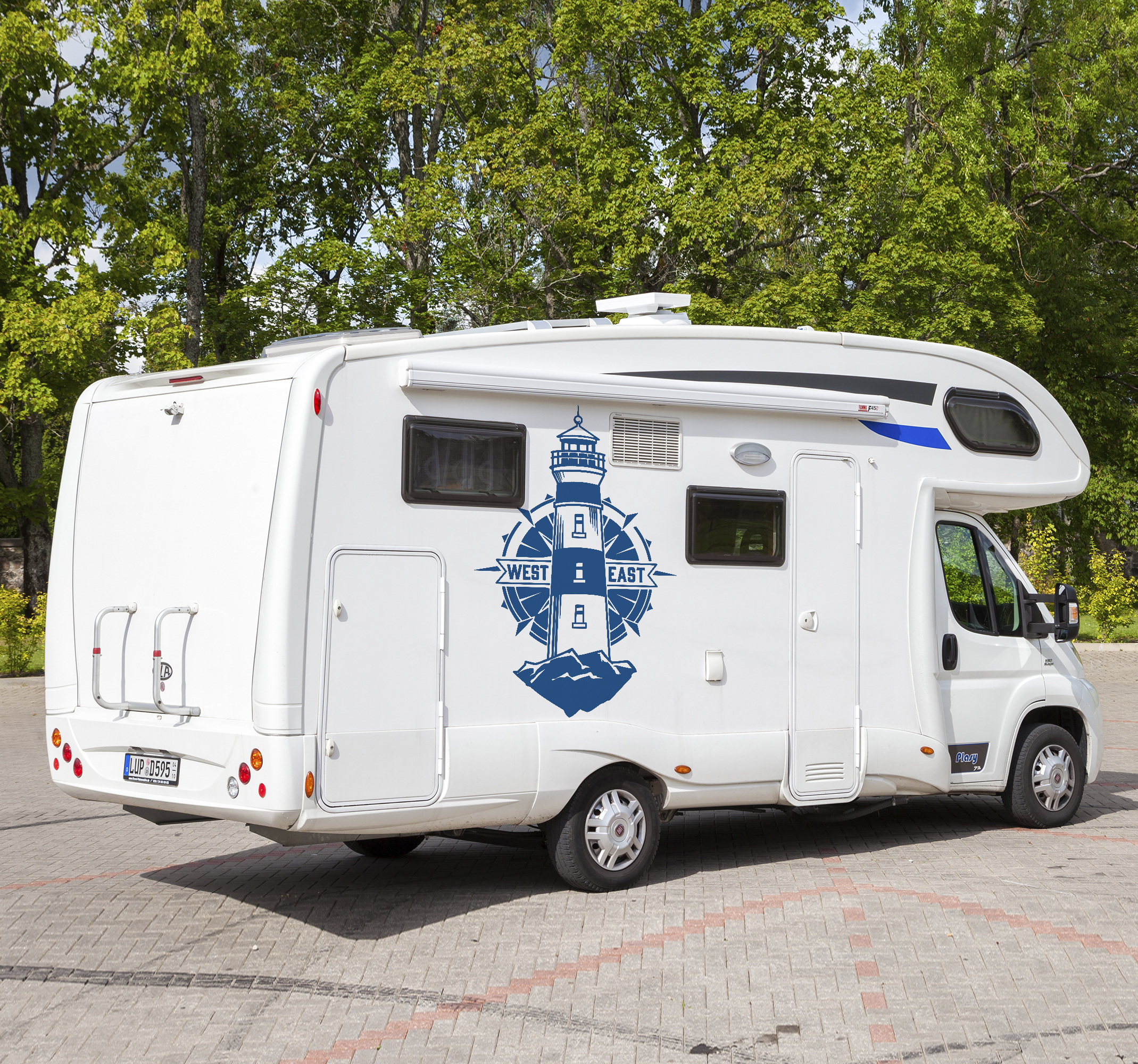 Muurstickers marine Vuurtoren en kompas camper