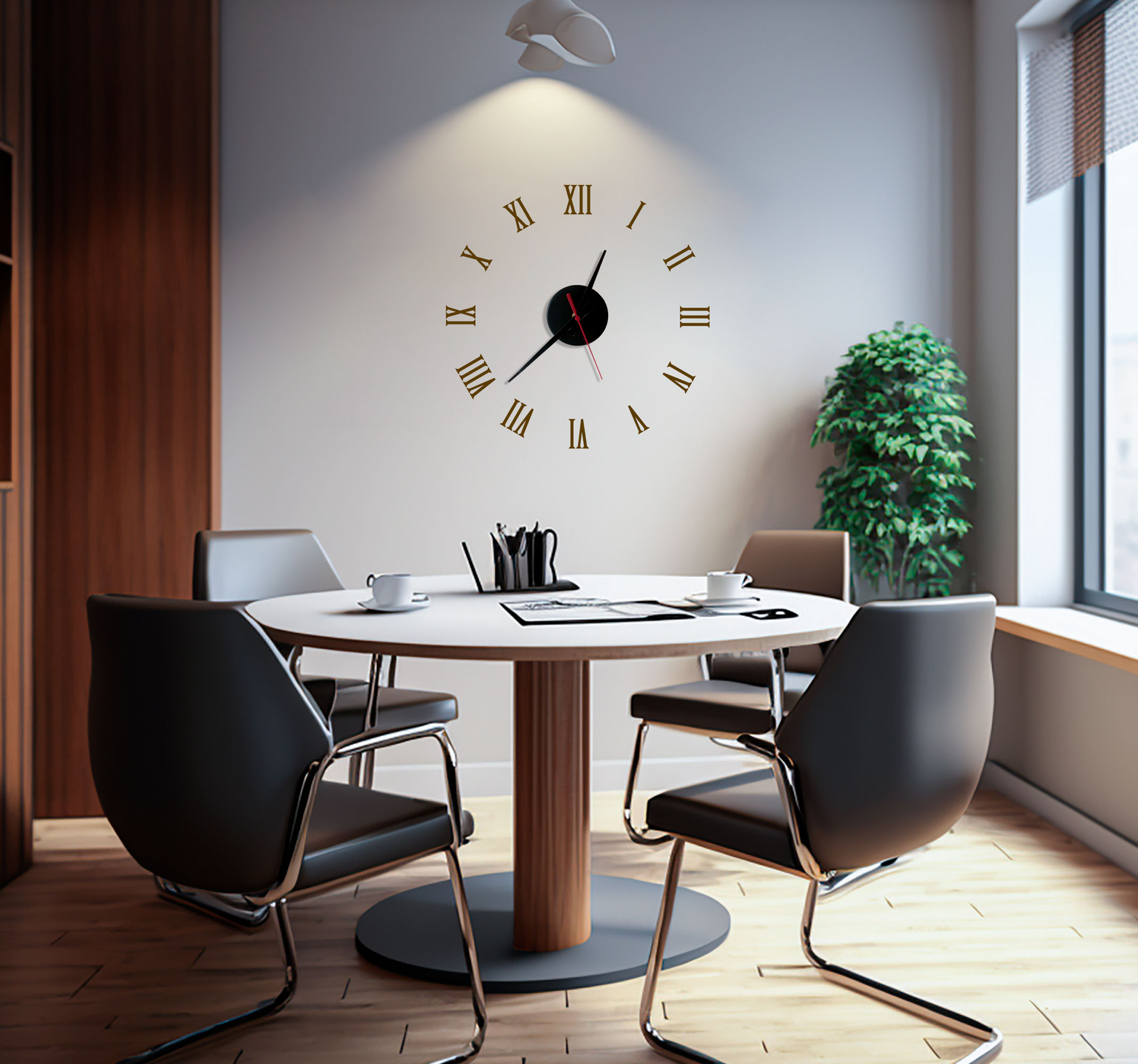 De Romeinse cijfers stickers voor klok is een uniek en klassiek ontwerp dat je muur direct transformeert. Met Romeinse cijfers en een traditionele klok uitstraling, voegt deze sticker een vleugje elegantie toe aan elke kamer. Het grafische ontwerp is zorgvuldig samengesteld en past perfect bij een klassieke interieur stijl. Deze sticker is een prachtige aanvulling op elke muur en zorgt voor een tijdloze uitstraling.