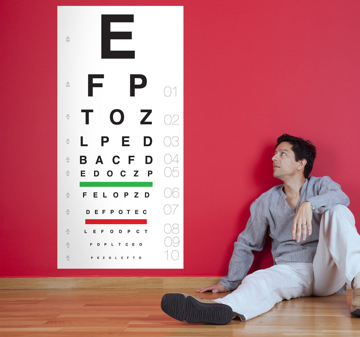 Deze muursticker hebt u vast al bij de oogarts of dokter gezien. Test uw ogen of die van uw klanten met behulp van deze leuke wandsticker.
