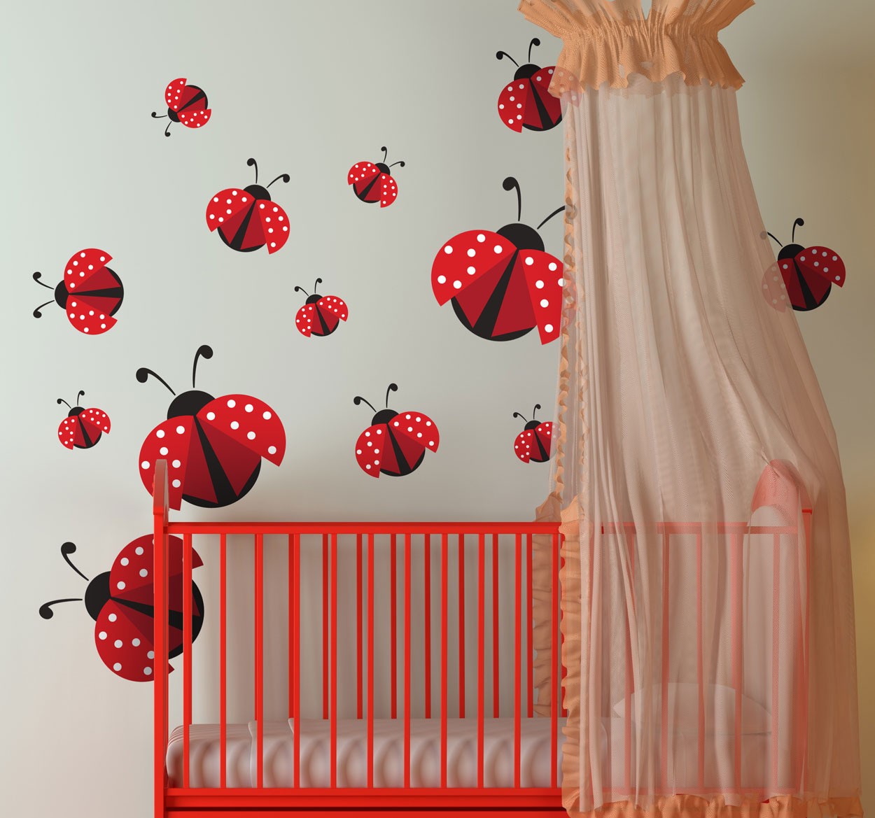 Wie houdt er nou niet van lieveheersbeestjes? Sinds kleins af aan vind je ze leuk en zo lief! Nu kun je ze voor altijd in jouw huis brengen! Personaliseer de babykamer of de kinderkamer met dit super leuk design! Of heeft u liever uw auto met lieveheersbeestjes? Het kan allemaal! De muursticker is gemaakt van goede kwaliteit vinyl en is heel makkelijk