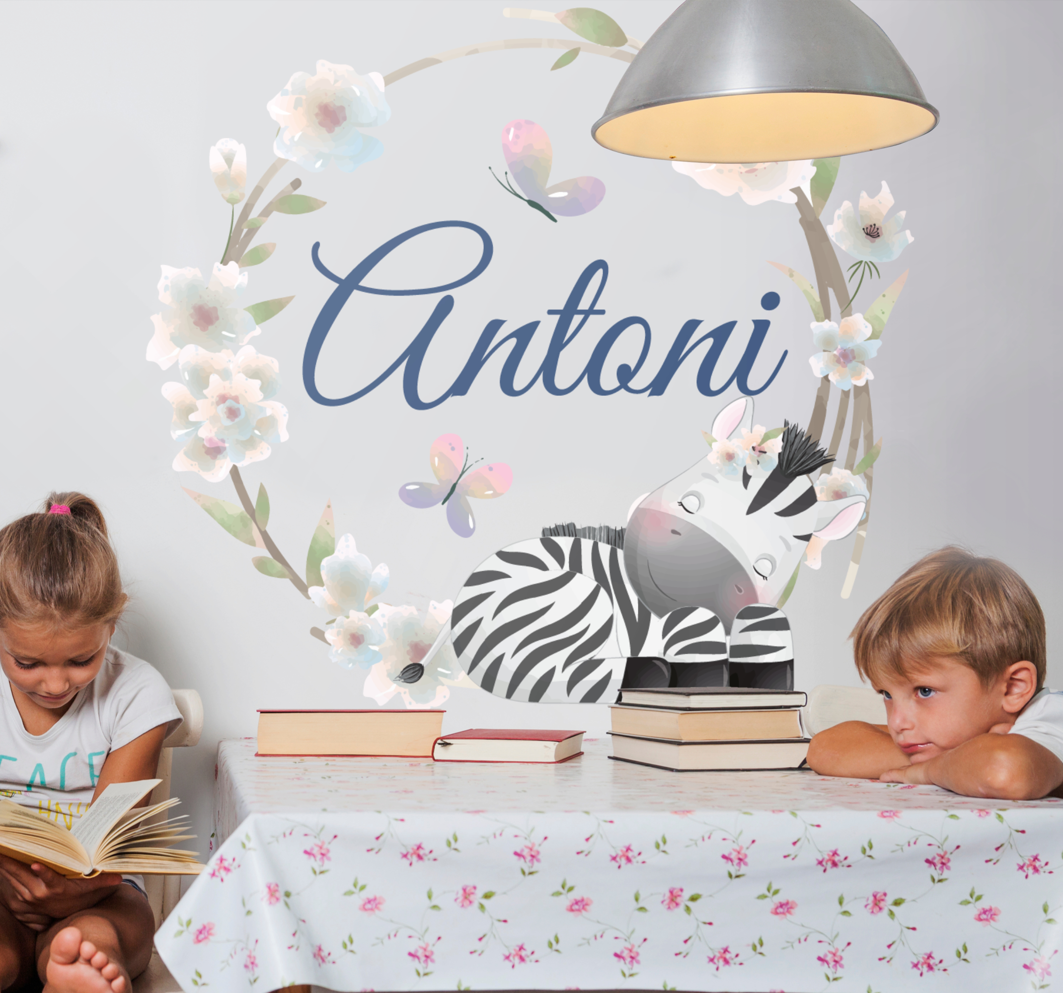 Stickers meisjeskamer Schattige dieren zebra met naam,