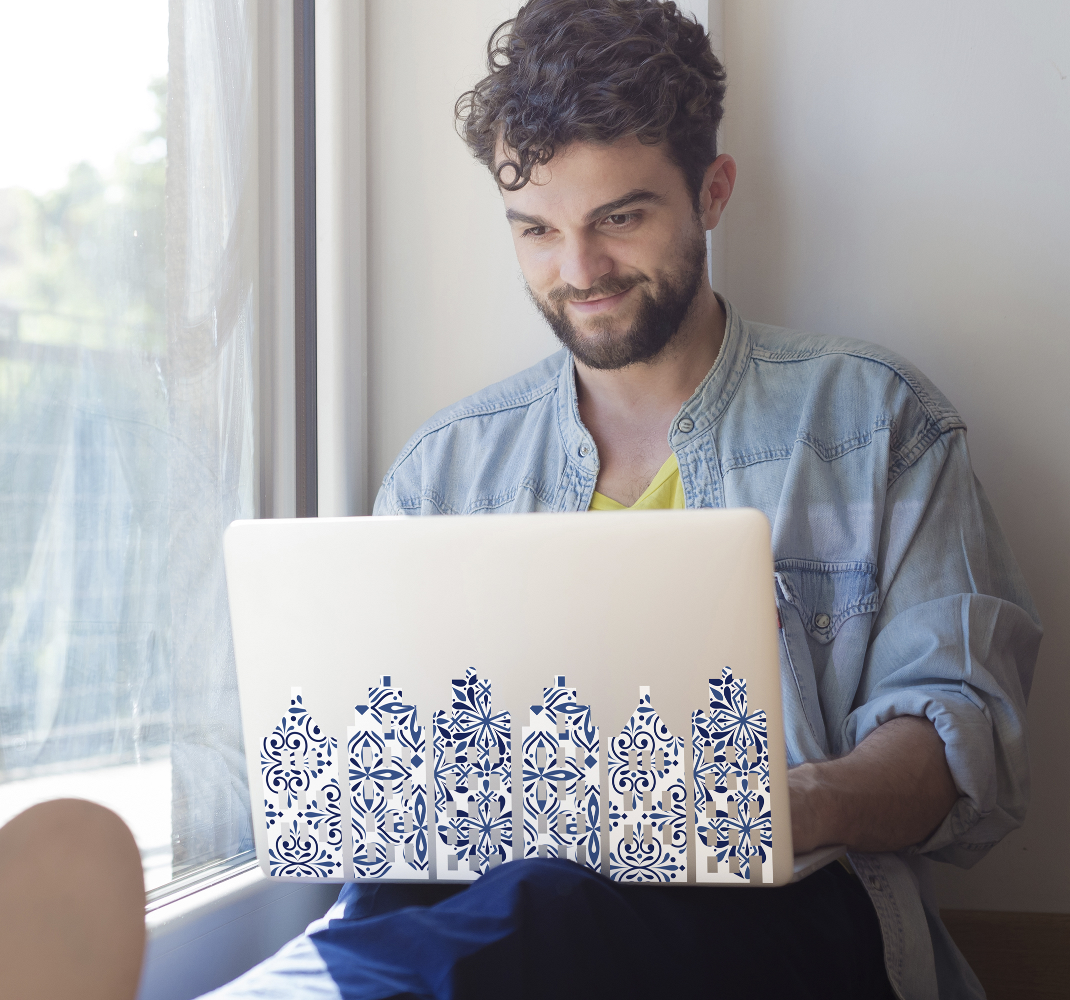 Een mooie en traditionele Nederland laptop sticker design van de grachtenpandjes huisjes in de kleuren wit en blauw, een delfts blauwe kleur zelfs! Deze Nederlandse huisjes laptop sticker is ideaal voor jongeren en ouderen. De huisjes laptop sticker is leuk als je van laptop decoratie delfts blauw houdt! De delfts blauw laptop sticker is makkelijk aan te brengen en ook makkelijk te verwijderen, als je vind dat het tijd is voor een nieuwe laptop sticker delfts blauw decoratie is traditioneel, maar ook modern en origineel. Ben je nog op zoek naar een leuk verjaardag cadeau, dan zijn onze unieke laptop decoratie nederlandse huisjes een ideaal idee!