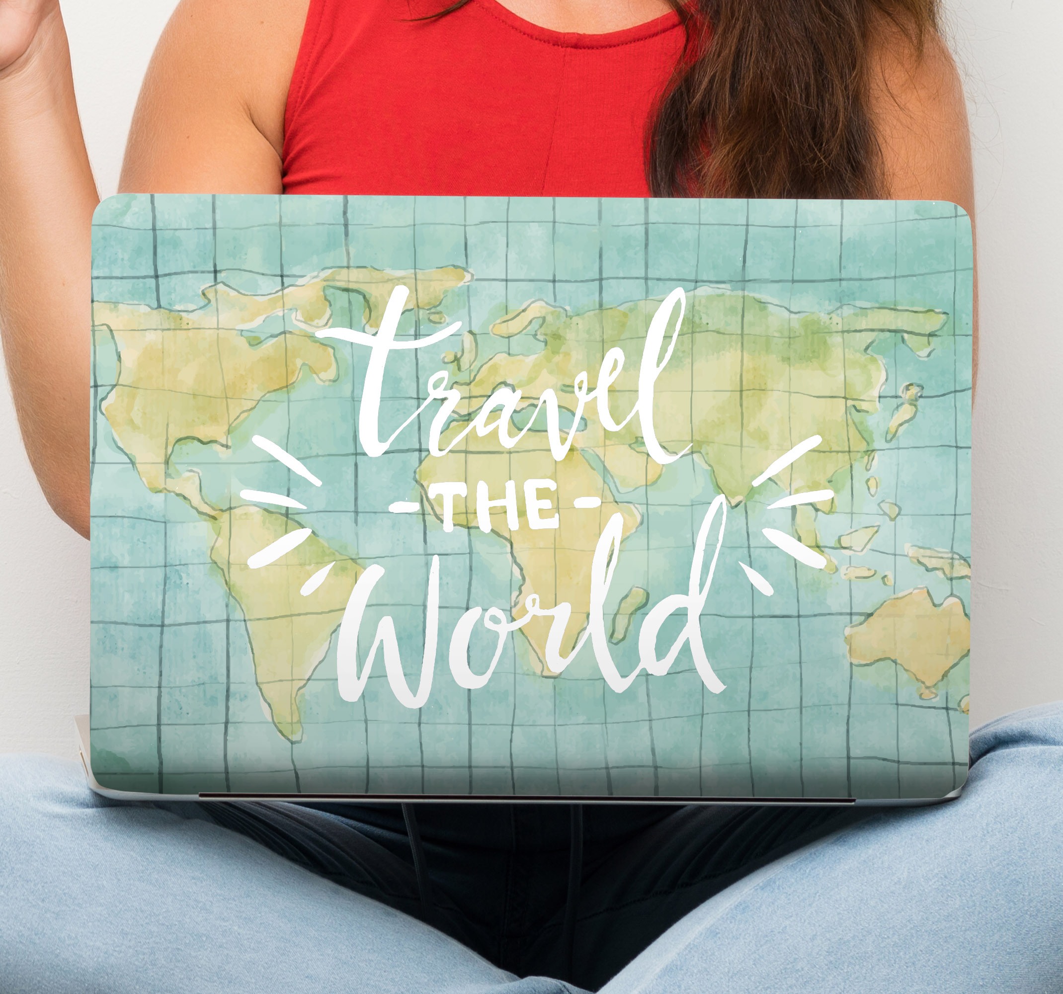 Kies de optie die het beste past bij uw apparaat en maak uw laptop persoonlijk met deze prachtige wereldkaartsticker.