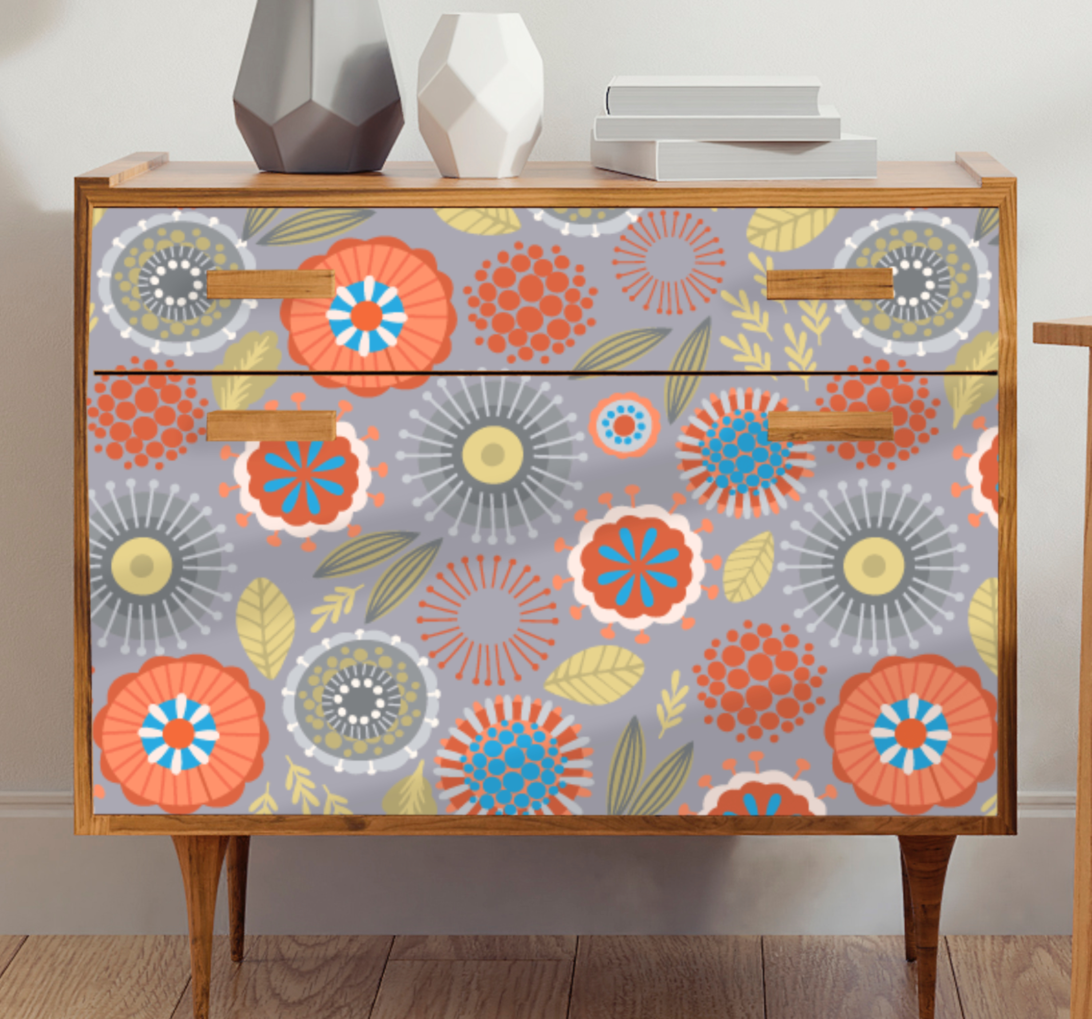 Kleurrijke volkskunst stijlvolle meubelsticker die er geweldig uitziet op elk meubeloppervlak. Het is niet alleen om een meubel te verfraaien, maar het houdt ook het meubeloppervlak beschermd tegen krassen en beschadigingen. Een eenvoudig aan te brengen meubelsticker gemaakt van het beste vinyl op de markt. Pas de geschikte afmeting aan die nodig is voor uw meubeloppervlak op het meetveld en het zal bij uw bestelling worden gemaakt. U kunt ook ander ontwerp op de website bekijken.