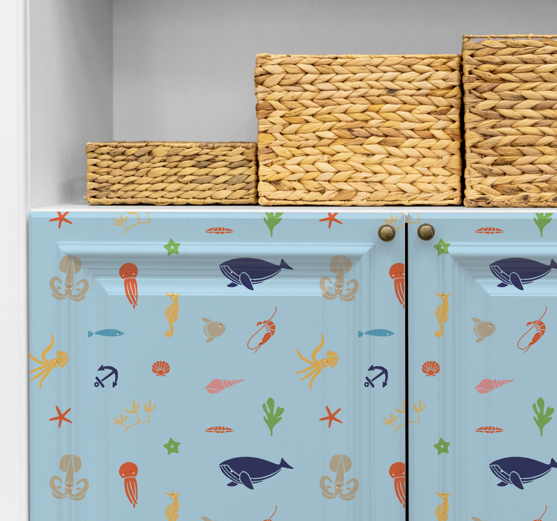Stickers voor op meubels Zeedieren op lichtblauwe achtergrond