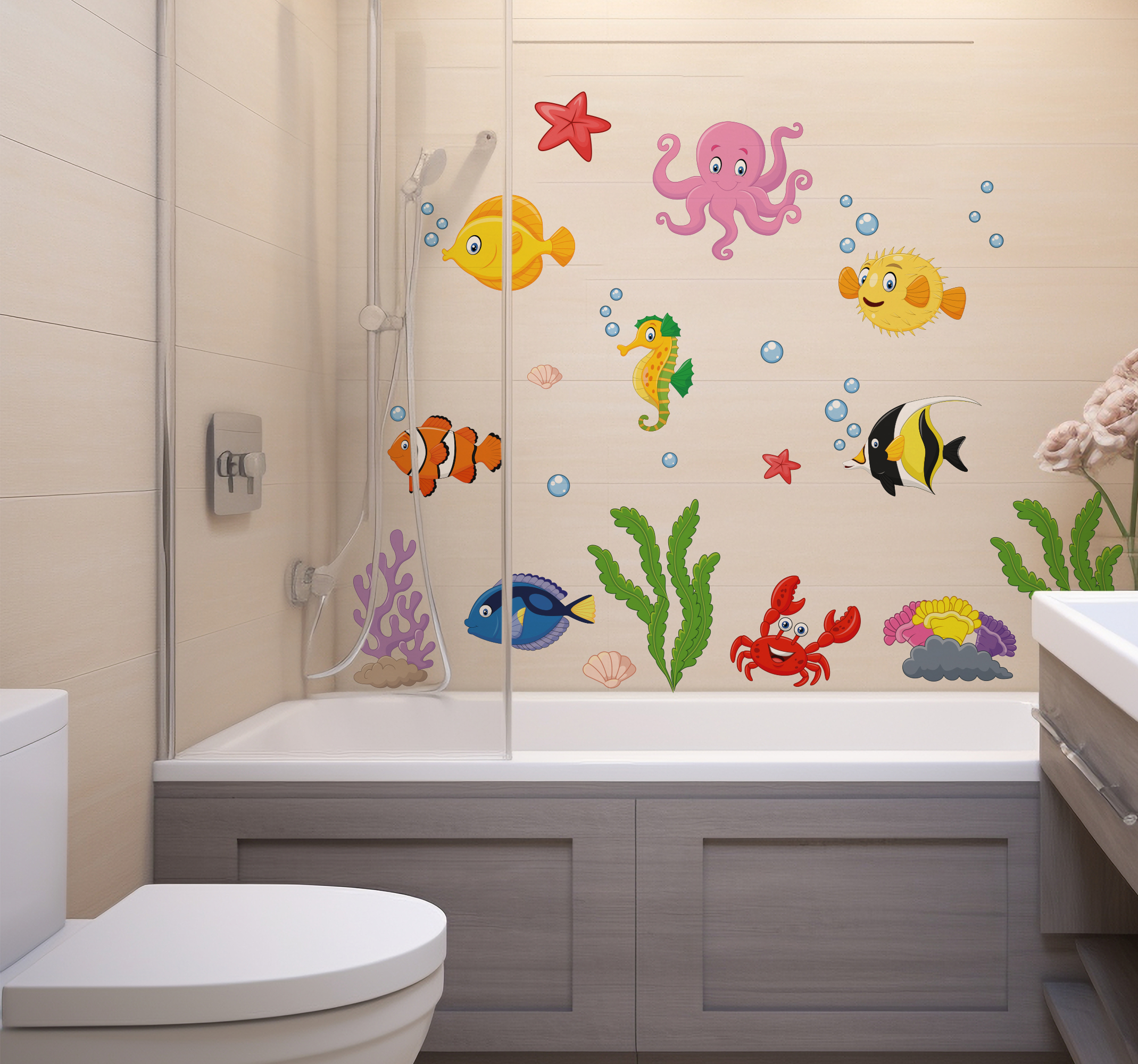 Deze Tekenfilmvissen Badkamer sticker is de perfecte keuze voor iedereen die op zoek is naar een unieke en kleurrijke manier om hun badkamer te decoreren! Het ontwerp van deze sticker is geïllustreerd met schattige tekenfilmvissen en brengt een levendige en vrolijke sfeer in de ruimte. Met zijn zee-gerelateerde elementen en prachtige illustraties, voegt deze sticker een speels tintje toe aan elke badkamer.