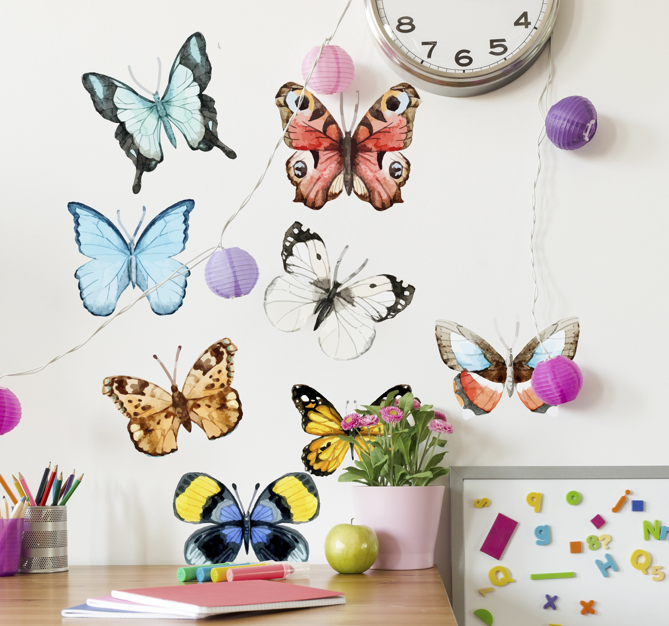 Deze sticker van verschillende vlinders zal uw woonkamer meteen personaliseren! Laat deze vlinders vliegen door jouw woonkamer! Verschillende kleuren en soorten vlinders met verschillende groottes. Deze wanddecoratie is gemaakt van goede kwaliteit vinyl en is makkelijk aan te brengen en te verwijderen! Deze sticker kun je bestellen in verschillende formaten!