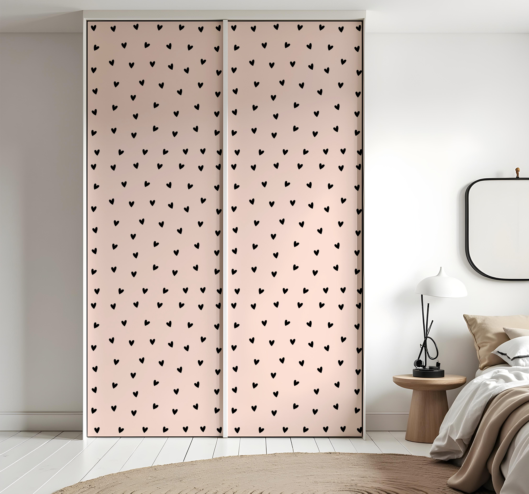 Breng een vleugje romantiek in je interieur met onze zwart hartpatroon meubel sticker. Dit prachtige ontwerp is een speelse combinatie van hartjes in een elegante zwarte tint die perfect is voor elke ruimte. De grafische weergave zorgt voor een visueel statement dat jouw meubels omtovert tot unieke eyecatchers!